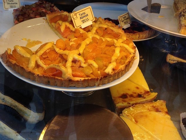 左上の1枚は、リヨンの商店街で売られていたもので、甘くてとろっとしていました。アプリコットのタルトのアンズの量が凄いですね。