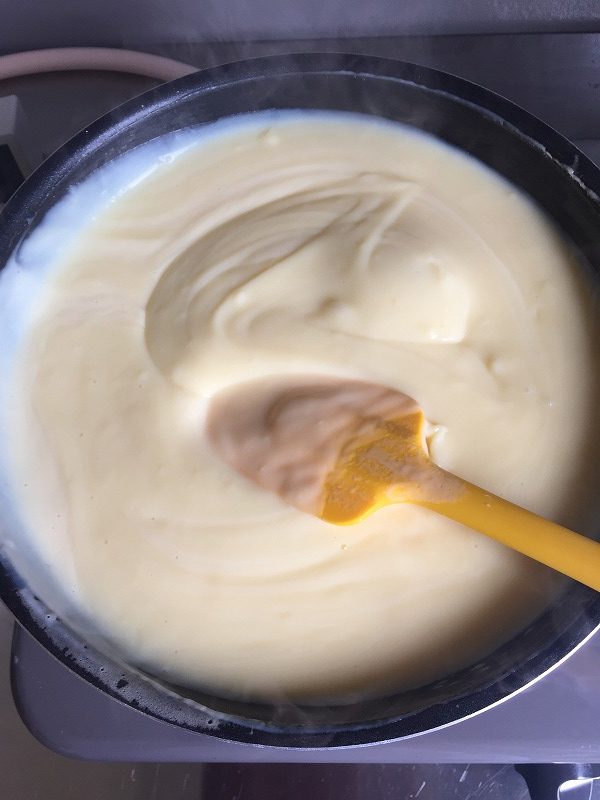 牛乳さえ用意すれば、ミックス粉と混ぜて火にかけ、とろみがついたら型に流して、オーブンで焼くだけというものです。ちょっと柔らかめの、あっさりとしたFlanができました。これも美味しかったです。