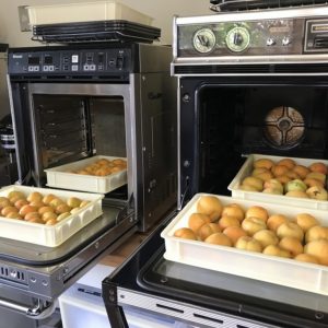 クーラーで涼しくした厨房で急いで作業します。