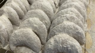 12月に入ったら、あちこちがクリスマスモードですね。 少しだけクリスマスっぽいお菓子として、キプフェル(スノーボールの生地を馬蹄形に焼いたクッキー)とフルーツケーキを焼きました。 フルーツケーキは洋酒漬けのドライフルーツ […]